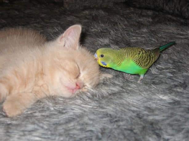 Mesmo sendo considerados inimigos naturais, esse dois ai querem mais é curtir! Tenho certeza que é muito mais gostoso pro gatinho ter esse lindo periquito como amigo do que como refeição!