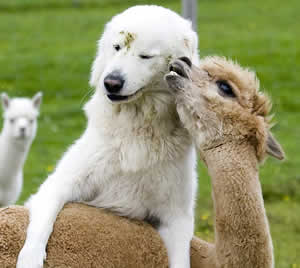 A cadela chamada “Clarence” e a alpaca “Cindy” mantêm amizade inusitada em uma fazenda em Goeming, na Áustria. Os dois animais vivem juntos desde que eram filhotes. Além de “Cindy”, outras 86 alpacas são mantidas na fazenda, que tem o maior rebanho da Áustria.