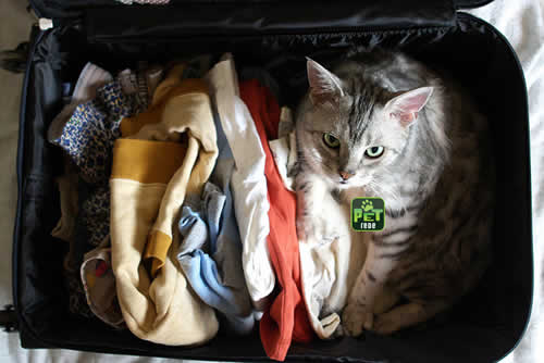 De avião: Para viagens nacionais, o Ministério da Agricultura exige atestado de vacinação e de saúde emitidos por um médico veterinário. Para viagens internacionais é necessário que seja solicitado ao Ministério da Agricultura o Certificado Zoo-Sanitário Internacional. Consulte o Consulado do país de destino para verificar quais as exigências para a entrada do animal. Os animais deverão ser transportados em caixas de transportes, que lhes permitam espaço suficiente para que consigam se levantar e se virar. Algumas companhias aéreas permitem que animais de pequeno porte viagem junto com os passageiros. Consulte a empresa para verificar quais as dimensões e tipos de caixas de transporte, se há necessidade de sedação e reserva de número de animais por vôo. Não esqueça de levar o bichinho ao veterinário para verificar se sua saúde está em ordem. Além disso, é importante que o animal se sinta bem e confortável na caixa de transporte. Faça a adaptação dois dias antes da viagem: coloque um brinquedo ou petiscos dentro da caixa e tente fazê-lo dormir ali por no mínimo duas noites, isso ajudará a diminuir o estresse durante a viagem.