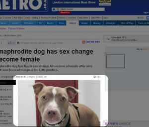 Veterinários realizaram uma cirurgia pioneira de mudança de sexo em um cachorro hermafrodita que virou fêmea. O animal parecia ser fêmea segundo seus donos, mas depois de visitas ao veterinário para que descobrissem que, na verdade, Saira tinha os dois sexos.