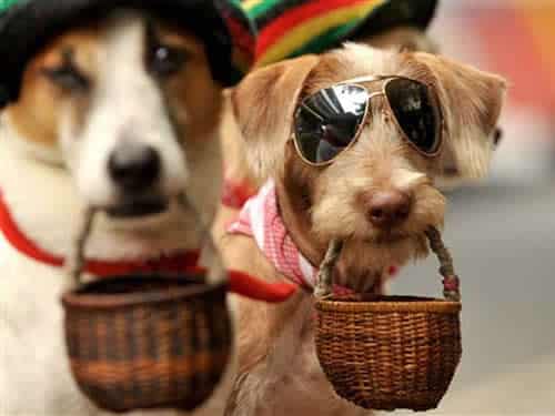 Usando chapéu e óculos, cães são utilizados pelos proprietários para pedir esmola em Manila, nas Filipinas. Com o objetivo de diminuir o número de pedintes na capital do país, o governo filipino anunciou que pretende dar o dinheiro diretamente às famílias pobres.