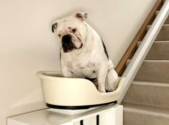 A corretora de seguros britânica MORE TH>N, preocupada com a obesidade canina, que, segundo a companhia, deverá atingir 52% dos bichinhos até 2022, criou um protótipo de elevador para cães obesos. O equipamento facilitaria a vida dos animais que não conseguem mais subir escadas devido ao seu peso.