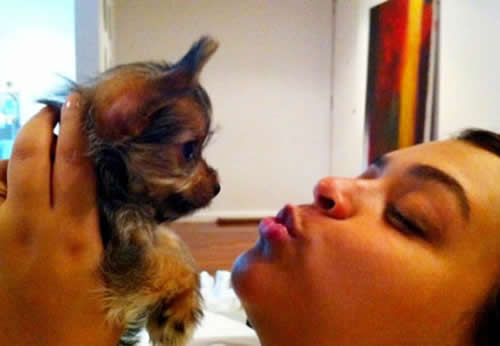 Preta Gil ganhou um filhote de cachorro da raça yorkshire no sábado (30). A cantora publicou uma foto em seu Twitter em que aparece enchendo o animal de carinho. Ela contou que o cãozinho estava sem nome quando o recebeu e resolveu pedir a opinião de seus seguidores no microblog para escolher o nome do pet. Entre as opções estavam: Beyoncé, Chanel ou Nina.