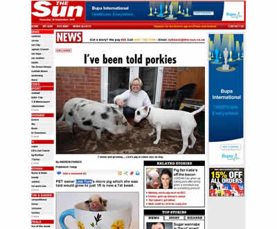 A britânica Lisa Turk, de 37 anos, diz que pagou 700 libras (quase R$ 1.900) por um microporco que cabia dentro de uma xícara. Segundo ela, o criador afirmou que o suíno iria crescer apenas 30,5 centímetros. No entanto, depois de um ano, o animal pesa mais de 40 quilos e é maior do que seu cachorro de estimação, segundo o jornal “The Sun”.