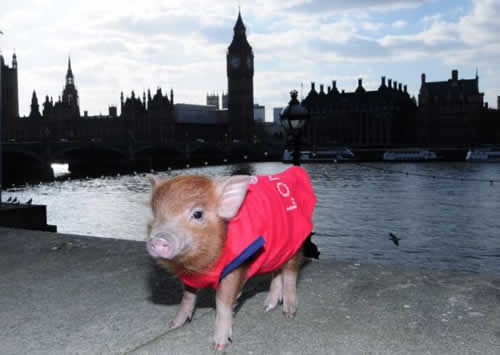 A britânica Jane Croft, de Christchurch, no sul da Inglaterra, levou Manuka, sua porquinha diminuta, para um passeio por Londres. O microbicho, de 12 cm de altura e 33 cm de comprimento, passeou pelos principais pontos turísticos da capital e fez grande sucesso.