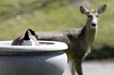 O agente Craig Cygan notou a amizade inusitada entre os dois animais durante uma patrulha de rotina. Segundo o especialista em fauna Paul Curtis, da Universidade de Cornell, veados e gansos não costumam prestar muita atenção no outro.