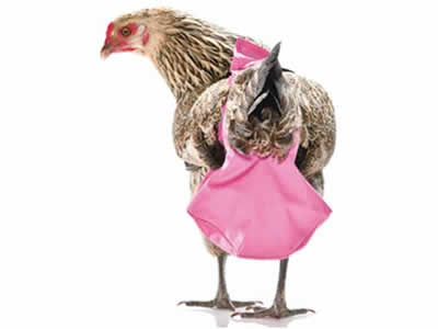 A americana Ruth Haldeman está faturando com a fabricação e comercialização de um produto inusitado: desde 2002 comanda uma empresa, a Chicken Diapers, que vende roupas de baixo e fraldas para galinhas e galos de estimação.